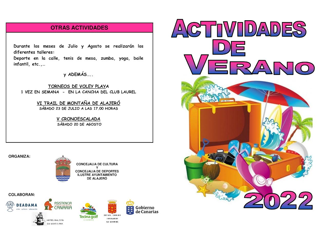 El mes de julio da comienzo en el municipio de Alajeró con numerosas actividades de verano que se prolongarán hasta el próximo mes de septiembre con contenidos deportivos, culturales, talleres medioambientales además de las actividades populares que se desarrollarán en los diferentes núcleos poblacionales de este municipio del sur de La Gomera protagonizado por sus respectivas fiestas populares.