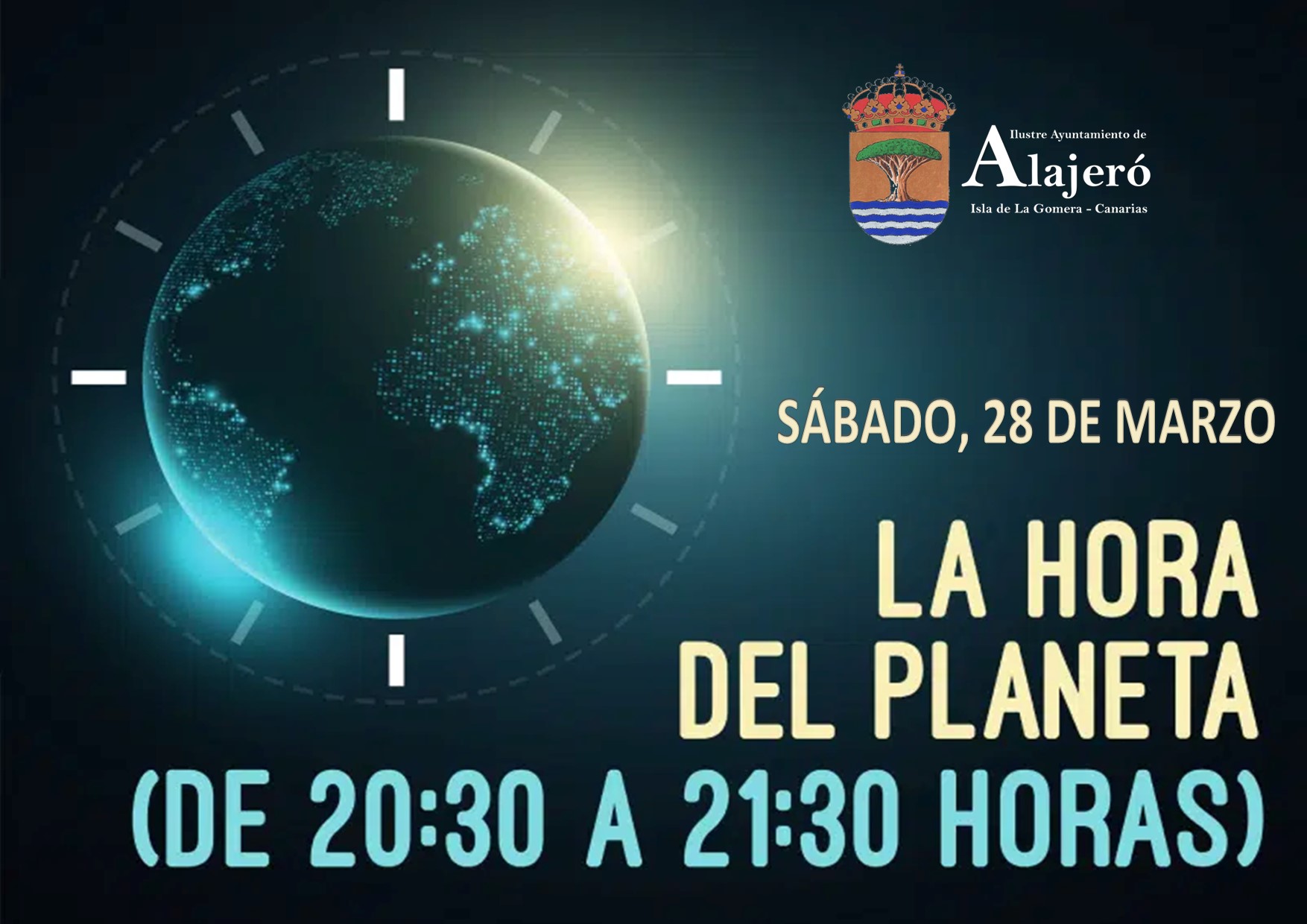 El Ayuntamiento de Alajeró ‘apagará’ este sábado, 28 de marzo entre las 20:30 horas y las 21:30 horas el alumbrado público y los edificios y espacios municipales por la celebración en todo el mundo de la denominada ‘Hora del Planeta’.