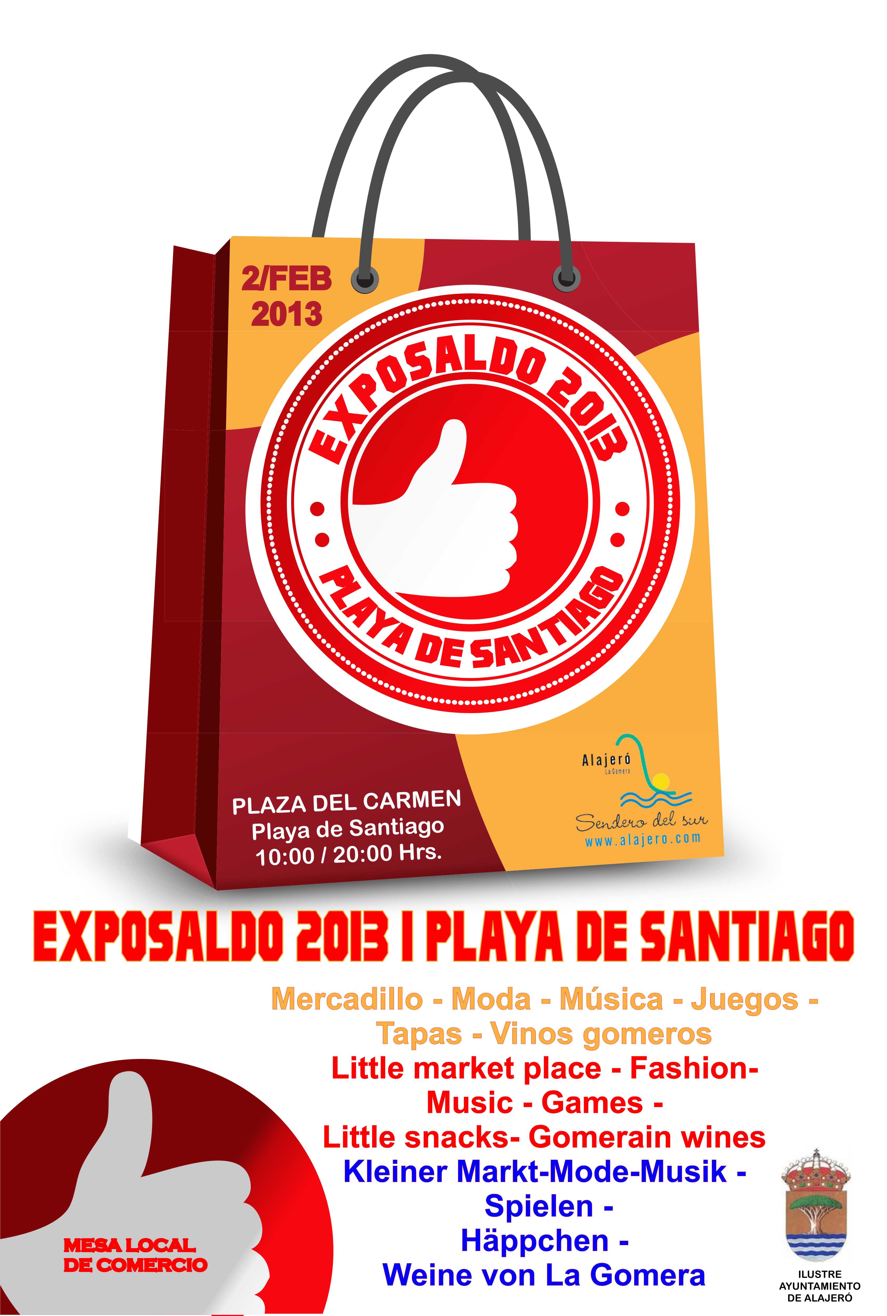 El próximo sábado, 2 de febrero, se celebrará en Playa de Santiago el ‘Exposaldo 2013’, una iniciativa impulsada por la ‘Mesa Local de Comercio’ y el Ayuntamiento de Alajeró, que pretende incentivar el consumo en la comarca con una serie de actividades que cuentan con la participación de diversos colectivos, empresas y ciudadanos entre las 10:00 a las 20 horas en diversos puntos de este enclave costero del sur de La Gomera el día anteriormente señalado.