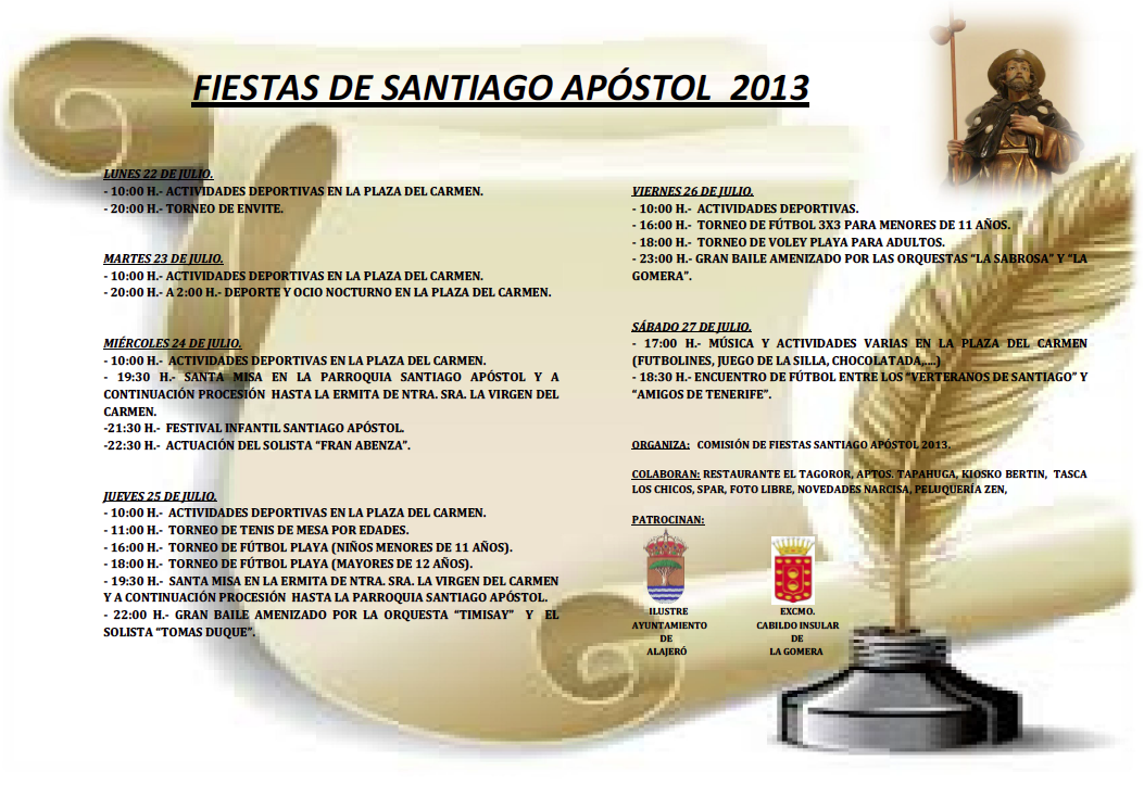 Los actos organizados por la Comisión de Fiestas ‘Santiago Apóstol 2013’ cuentan con la colaboración de diversas empresas de la localidad además del propio Ayuntamiento y del Cabildo Insular.
