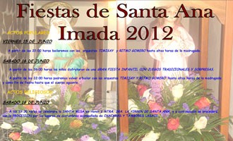 Imada es un núcleo poblacional que pertenece al Término Municipal de Alajeró que celebrará este próximo fin de semana sus fiestas en honor de Santa Ana. Entre los actos organizados para este evento se destaca la Santa Misa y posterior Procesión por los lugares de costumbre acompañada de Chácaras y Tambores. Programa de Actos: