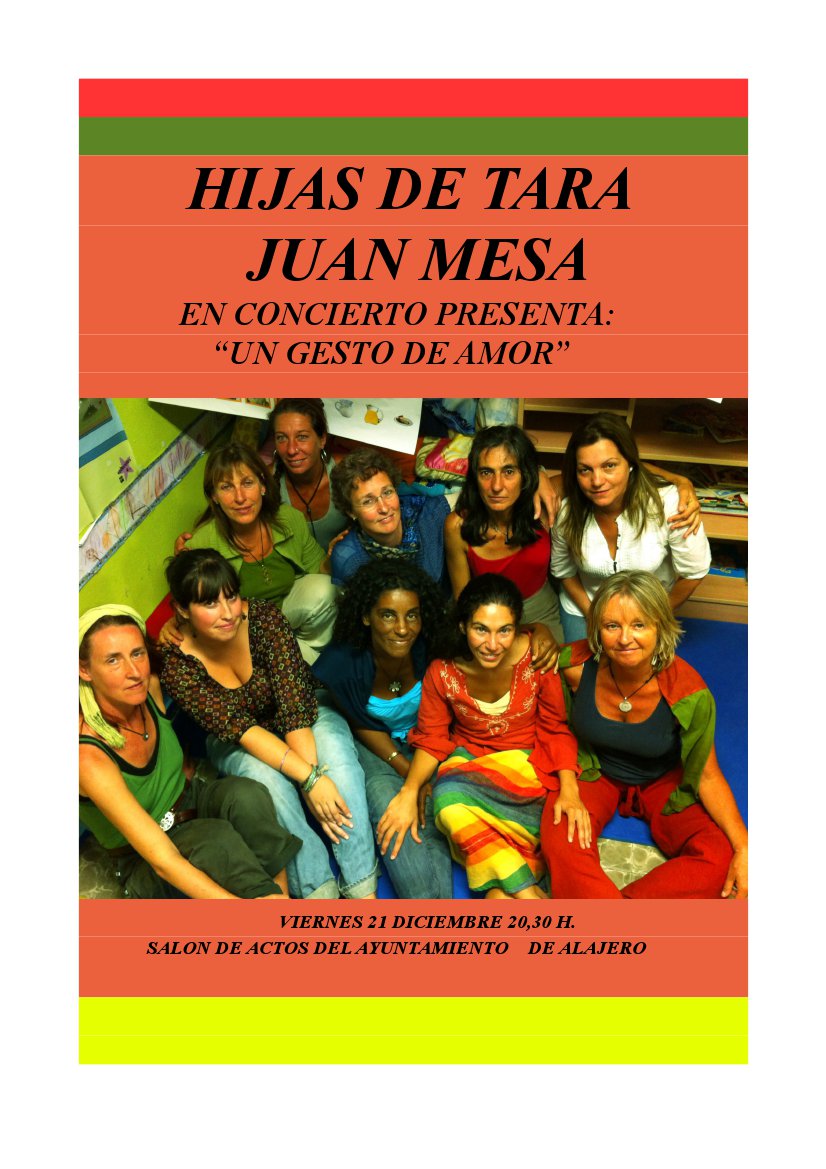 El próximo viernes, 21 de diciembre a las 20:30 horas tendrá lugar en el salón de actos del Ayuntamiento de Alajeró el concierto “Un Gesto de Amor” a cargo de Hijas de Tara y Juan Mesa.