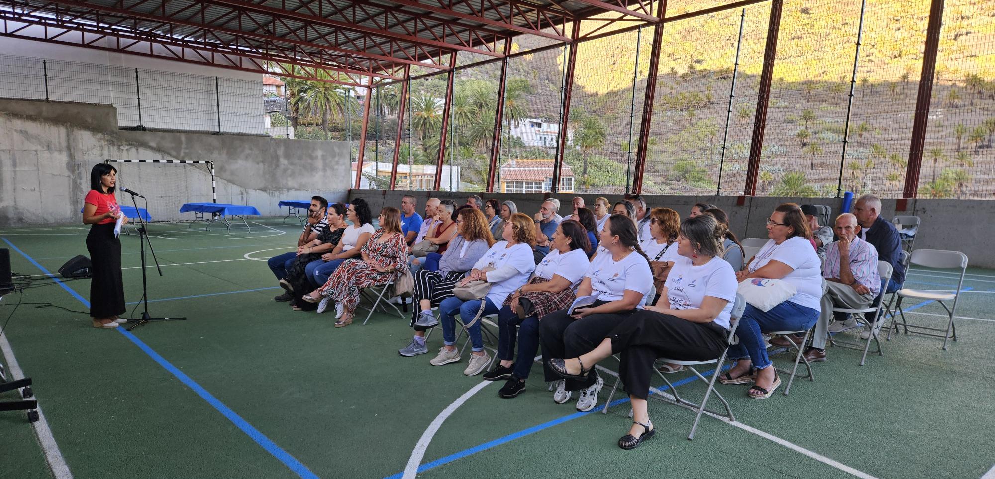 Durante del acto se procedió a la entrega de diplomas o certificaciones a los y las participantes en el proyecto que realizaron del curso de inglés básico y se entregaron diversos obsequios. Finalmente se celebró la actuación del grupo ‘Hijos del Silbo’ y se pudo compartir un piscolabis entre los asistentes.